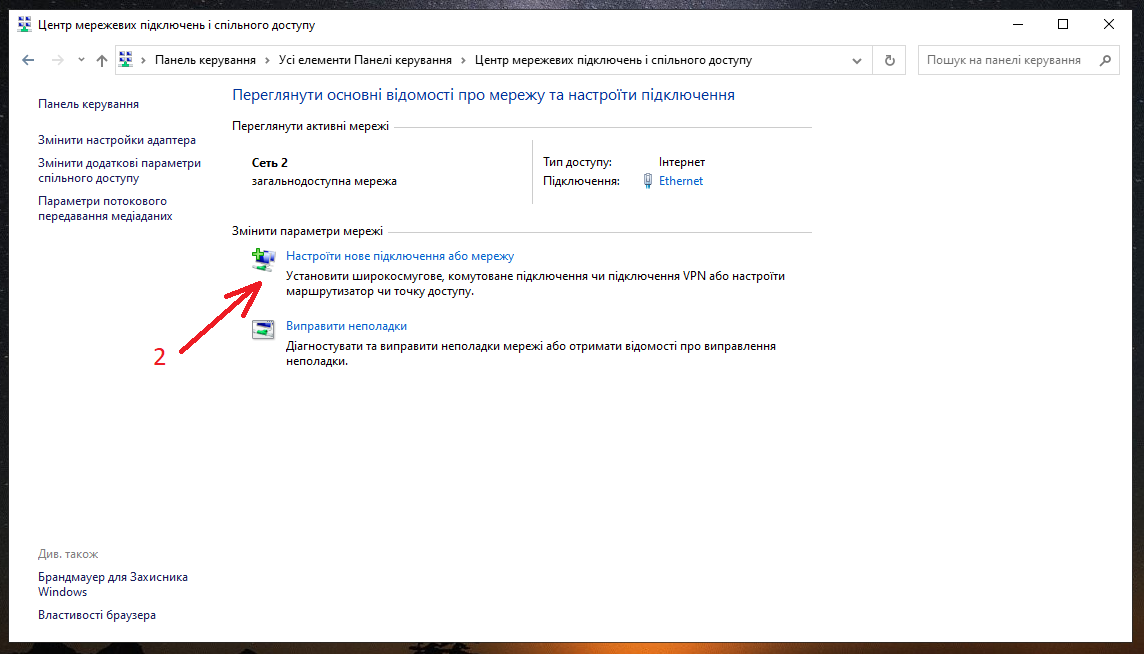1. Натискаємо на пункт Настроїти нове підключення або мережу