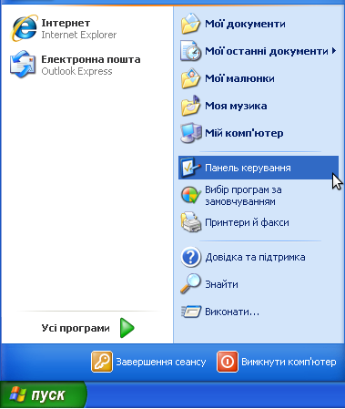 1. Відкриваємо меню Пуск, далі Панель керування: