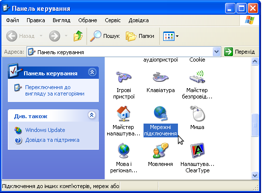 2. У вікні Панель керування відкриваємо іконку Мережні підключення: